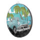 Cuba vintage car travel poster, classic cuban auto travel vacation poster.