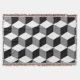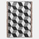 Optical illusion of shapes creating the pattern of cubes in black, white and grey.