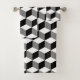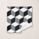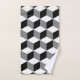 Optical illusion of shapes creating the pattern of cubes in black, white and grey.