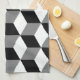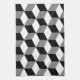 Optical illusion of shapes creating the pattern of cubes in black, white and grey.