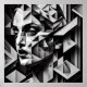 Black and white art of a woman with a geometric pattern, in the style of fragmented portraiture, 3D, bold graphic illustrations, strong diagonals.