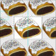Design features on original marker illustration of cucidati (cuccidati) a classic Italian fig cookie which is often served during the Christmas holiday season. With roots in Sicily, these delightful cookies are stuffed with figs (along with honey, spices, nuts, or jam), coated in icing, and topped with rainbow sprinkles.
