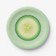 This paper plate features a green cartoon illustration of a cucumber slice.