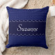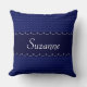 Blue swirl pattern pillow you can personalise with any name. Front has the name, back has a cat silhouette.