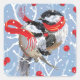 Lovely sticker to apply to your Christmas presents—or anywhere. Pair of chickadees in their scarves loaded with of winterberries cosying up on a snowy day. Find coordinating wrapping paper, personalised card, and more in this pattern in the “Newlyweds First Christmas” collection.