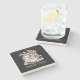 The coasters are gorgeous, a quality feel and heavy weight. They look like a precious archeological find. A rustic stone juxtaposed with a modern floral black and white print. I like the way the print goes slightly imperfect on the cut stone edges giving them a kind-of natural beauty.