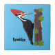 Cue funny Pileated woodpecker cartoon illustration Ceramic Tile