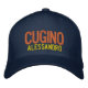 Cugino (cousin/male) Personalised embroidered cap hat Italian Cousin Sicilian Italy Sicily family Italian Male Cousin Navy baseball cap with orange and yellow embroidered threads