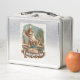 This is a standard metal lunchbox that appears to work just fine. We designed this box ourselves with an uploaded photo and custom text on the front and back. It looks absolutely beautiful except the front of the lunchbox is not centered like it shows in the photo. The print borders don't align with the inset flat part of the box where the preview photo online showed it perfectly centered in there. The back looks nice and centered though.