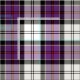 Fabric with a traditional Scottish plaid pattern in royal purple, black, and creamy white, with bright red, and sky blue highlights.The Culloden Dress tartan is said to have been worn by a member of Bonnie Prince Charlie's staff at the Battle of Culloden in 1746. Pattern repeats every 4". Special order larger or smaller scale via https://plaidwerx.com/contact.htm