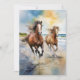 This postcard features a watercolor portrait of two wild horses running down a beach on Cumberland Island National Park.