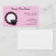 This cute business card is great for any coffee or tea business. It has a pink, black, and white tea cup and saucer on the left side. The background is pink and white checks. All text is customisable in pink for your business!