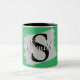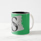 HAMbyWhiteGlove aka HAMbWG - A fun monogram that comes with any colour background you desire! Just choose the personalise option to add your monogram, then customise to choose background colour, and font colours and types! Shown in greenn with white and black lettering on a black and white mug.