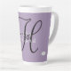 Lavender purple coffee mug with your name in white and initial in black. Colours can be changed by choosing the personalise and customise options. Design HAMbyWhiteGlove aka HAMbWG.