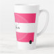 Pink and white stripe Latte or Coffee Mug with your name in black and initial in grey. Design HAMbyWhiteGlove aka HAMbWG