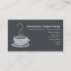 A business card featuring a photo of a chalkboard drawing of a cup of hot coffee sitting on a saucer. Personalise with your name and business information.