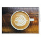 Cup of Coffee Latte with Leaf-Shape Foam on Wood