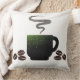 Various apparel, accessory, home decor and housewares decorated with a glittery cup of coffee and velvety coffee beans.