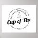 This darling sign will be the perfect compliment to the tea lovers kitchen. The design features a round dotted circle with "Talk to me after my first" and "Cup of Tea" text, all in black.