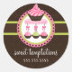 © 2012 Socialite Designs. Whimsical cupcake on a stand and three cake pops inside a lace circle sticker design. The background has a chocolate and cocoa damask pattern. A perfect business card for a bakery business or event catering business such as dessert tables. Personalise this bakery box seal with your information.