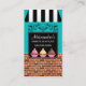 © 2011 Socialite Designs. An elegant cupcake bakery business card with a shop sign and colourful cupcakes. Great to use as cake tags as well. Font style and colour can be changed. Need HELP with customisation? Please do not hesitate to contact me with your requirements and a link to this design.