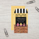 © 2011 Socialite Designs. An elegant cupcake bakery business card with a shop sign and colourful cupcakes. Great to use as cake tags as well.