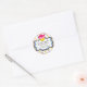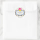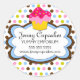 © 2010 Socialite Designs. Whimsical cupcake and cloud banner design stickers. The background has a colourful polka-dot pattern.