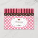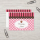 Pink and brown candy coloured stripes, gingham, chocolate dots, and scallops give this cupcake business card retro style. Use this business card for a bakery, boutique, shop, catering, etc...Customise the information to suit your needs, add or delete text, etc. The designs are from original art.