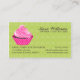 © 2013 Socialite Designs. Promote your bakery business with these colourful cupcake business cards. Our design has an a cupcake inside pink polka-dot cup. Your business text goes inside a whimsical scalloped circle and finished off with a pink polka-dot ribbon.