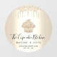 Present your best self to your clients, with this elegant, sophisticated, simple, and modern custom name store round window cling. A sparkly, champagne gold cupcake, script handwritten typography and glitter drips overlay a faux metallic champagne gold ombre background. Personalise with your full name, business, or other info. Available in 5 sizes: 4”x4”, 5”x5”, 8”x8”, 12”x12”, and 24”x24”. Makes a chic, and stylish statement that will smartly display your business and welcome your customers in a professional manner.