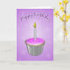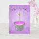 Sweet birthday card featuring a vanilla cupcake with strawberry frosting and blue sprinkles for fun all wrapped up in a fancy foil wrapper. Inside text is customisable. Original © Marianne Gilliand 3d and 2d digital artwork. Matching stickers available.