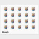 Round sticker is shown with a cute birthday cupcake topped with a books print.