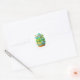 Round sticker is shown with a cute cupcake birthday dinos print.