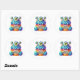 Round sticker is shown with a cute cupcake birthday blue monster print.