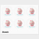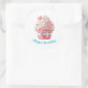 Round sticker is shown with a cute cupcake birthday print.