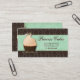Cupcake Business Card Crown Mint Brown Damask