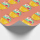 Cupcake heart and cherry peach gold teal cute wrapping paper