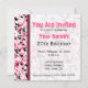 An invitation featuring a hot pink cupcake outlined in black inside a matching pink and black frame. Background is black and pink paint splatters over white. Opposite side features matching paint splatter background with black and pink text over sheer side. Personalise with details of your event. Look for matching items in the "Birthday Shop" category of The Pink Schoolhouse store.