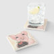 The coasters are gorgeous, a quality feel and heavy weight. They look like a precious archeological find. A rustic stone juxtaposed with a modern floral black and white print. I like the way the print goes slightly imperfect on the cut stone edges giving them a kind-of natural beauty.