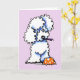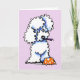 Hand drawn illustration by Andie of Off-Leash Art of a white Poodle eating a birthday cupcake. Makes great birthday greetings for moms, dads, kids, and pet lovers.
