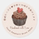 This charming round product label features a hand-painted watercolor chocolate cupcake topped with creamy frosting, sprinkled with delicate sugar pearls, and finished with a small red heart 🍫❤️. The calm brown tones and artisanal style create a warm, inviting look perfect for baked goods, café treats, or handmade sweets. Above the cupcake, the Japanese text reads “Delivering a handmade taste filled with love,” adding cultural charm and a heartfelt touch. The “Handmade with Love” message and product name area are fully customisable, making it easy to brand your packaging beautifully. Ideal for pastry chefs, home bakers, and boutique food businesses wanting to add a professional yet personal flourish 🍰✨.