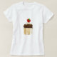 A white ladies spaghetti strap top with a cupcake motif. The strawberry and cream-topped cholocate cupcake is from a handpainted paper collage design by Judy Adamson.