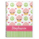 This cute and yummy Peace Love Cupcakes chocolate cupcake spiral notebook cover with pink icing and sprinkles on a pink and green peace symbol and heart background can be personalised with your name on the pink ribbon design. This fun and girly custom notebook can be used as a journal or diary too, and it is equally great for home office supplies of back to school use. Artwork © Chrissy H. Studios, LLC. All Rights Reserved.