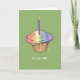 This whimsical Cupcake with Candle Paint the Town Birthday Card features a rainbow coloured icing cupcake with soft orange paper and purple candle on green background, and says, "It's your DAY..." On the inside, "Let's paint the town. Happy Birthday!"