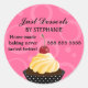 © 2015 Socialite Designs. Cupcake with vanilla swirl icing, cherry on top and pink bubble background sticker design. This cupcake bakery seal matches our cupcake bakery business cards.