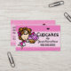 An achingly sweet and charming 2-sided business calling card that is fully customisable to suit your needs. All text and colours can be changed to suit. Features an adorable girl with white apron and long curly red hair. She is happily presenting her latest sweet creation - a large iced cupcake. In bright, cheerful colours in a whimsical stained glass window style.