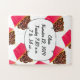 I did order the puzzle in a 30 Oversized pieces format - however the puzzle pieces were small and as a result the puzzle could not be presented at the time of the proposal as it wouldve been rather time consuming! The printing turned out fine. The majority of colours were crisp and clear except for the gold border around the text - which turned out somewhat greenish