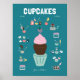 Poster with a recipe of raspberry and chocolate cupcakes.