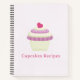 A pink recipe notebook with a pastel cupcake and personalised text on the front and back. You could write down all your favourite dessert recipes, so you always have them at your fingertips. You can also give it to someone who likes to bake cakes!