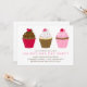 Valentines Day party invitations featuring three beautiful cupcake illustrations.
